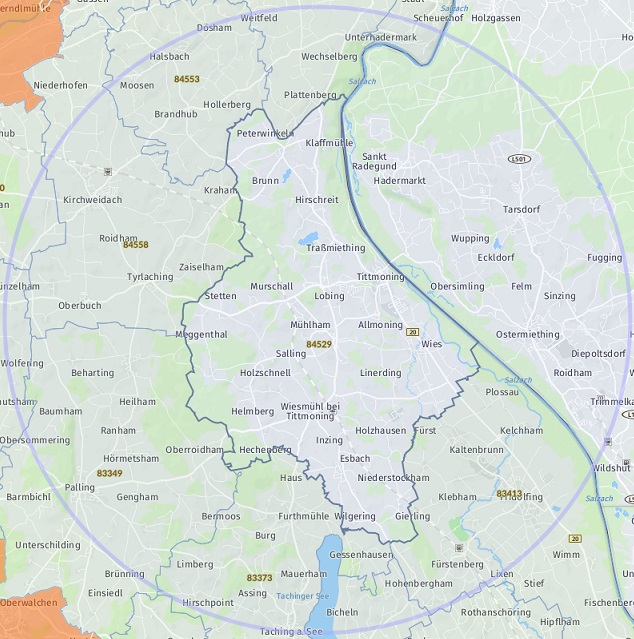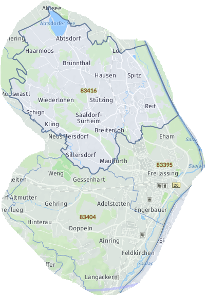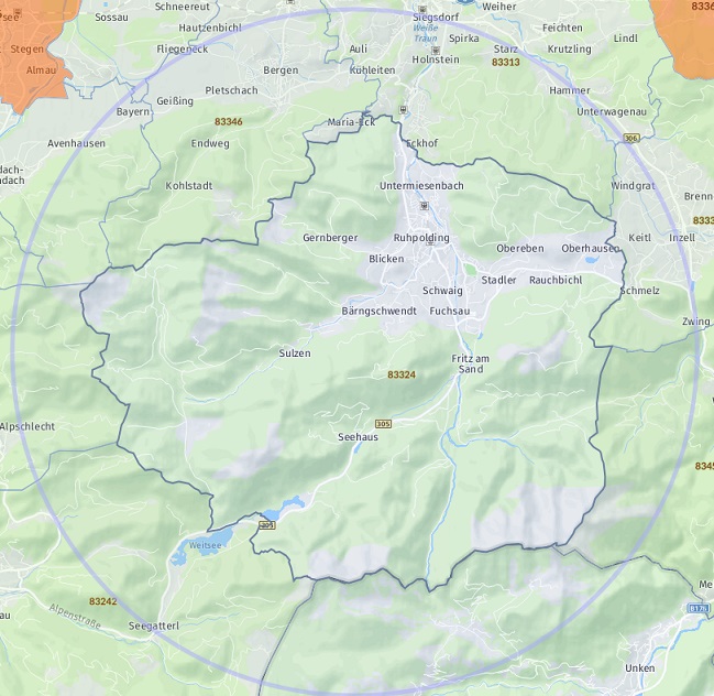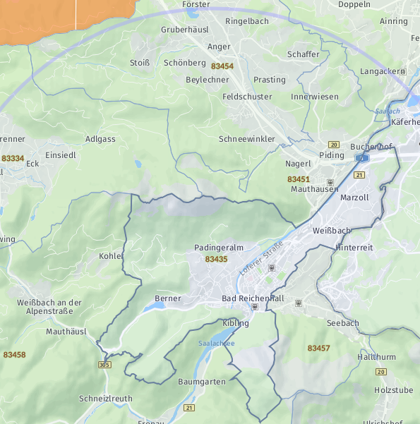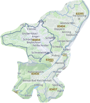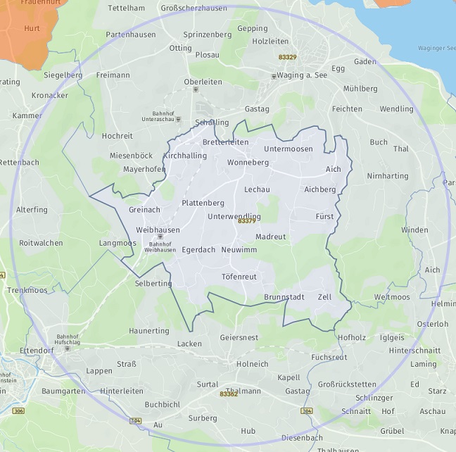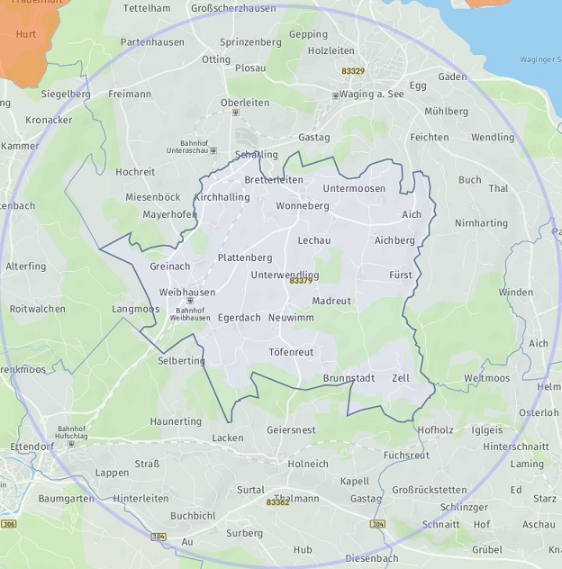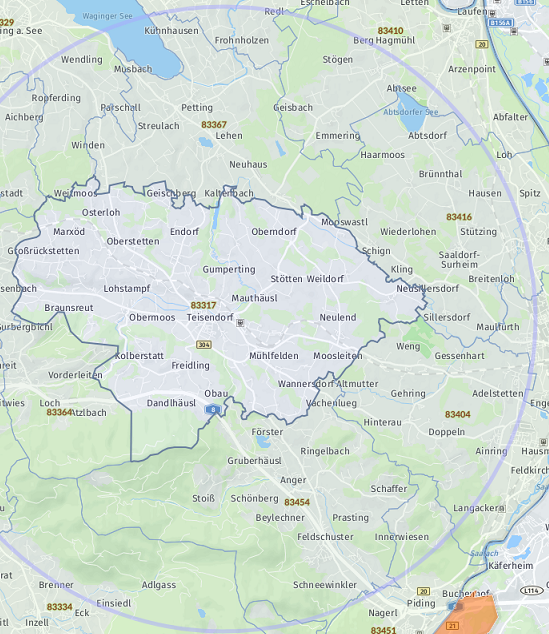 OrtPetting Wonneberg Waging am See Taching am See Kirchanschöring Fridolfing Teisendorf Saaldorf-Surheim Laufen Traunstein Bad Reichenhall Anger Teisendorf (Neukirchen am Teisenberg) Freilassing