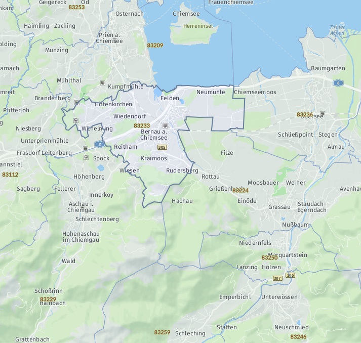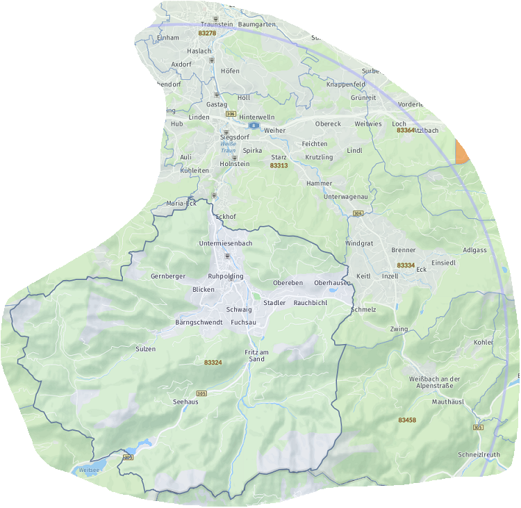 OrtTraunstein Chieming Bergen Siegsdorf Grabenstätt Vachendorf Nußdorf Waging am See Seeon-Seebruck (Truchtlaching)