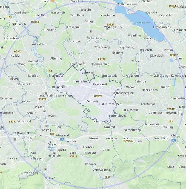 OrtSurberg Teisendorf (Neukirchen am Teisenberg) Teisendorf Chieming Traunstein Bergen Siegsdorf Grabenstätt Vachendorf Nußdorf Wonneberg Waging am See Traunreut Seeon-Seebruck (Truchtlaching) Taching am See Traunstein Siegsdorf Chieming Nußdorf Petting Anger Freilassing Bad Reichenhall