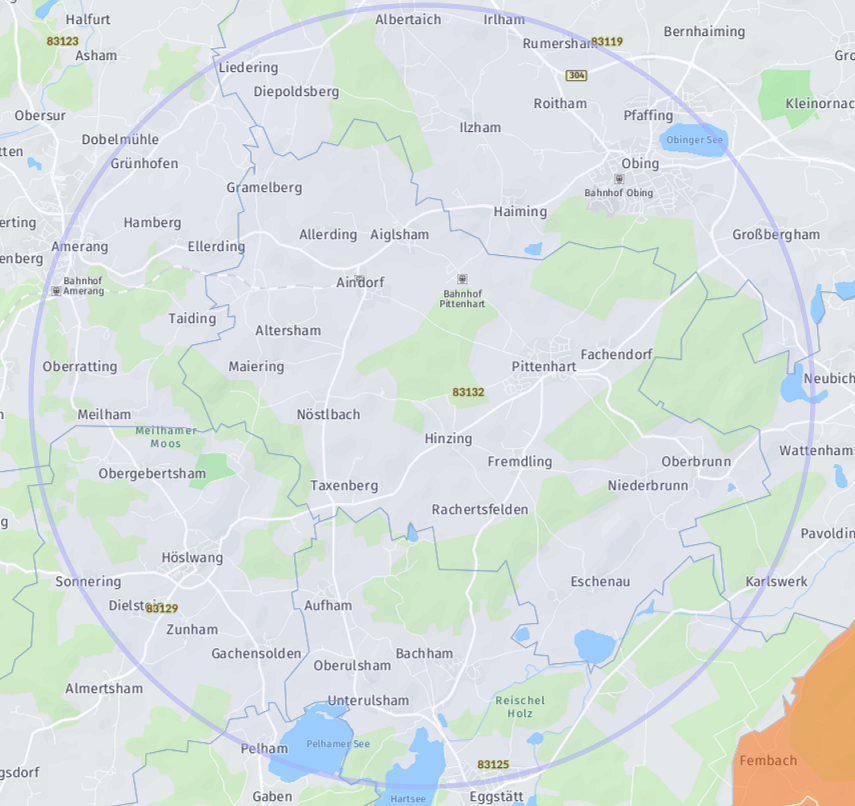 Während Ihrer Schwangerschaft und im Wochenbett kann ich Sie in den oben genannten PLZ-Gebieten betreuen, sofern Ihr Wohnort max. 15 km von Schnaitsee entfernt liegt (Autostrecke).